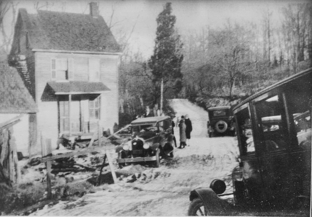Photograph of the investigation at Nelson Rehmeyer's home, 1928.